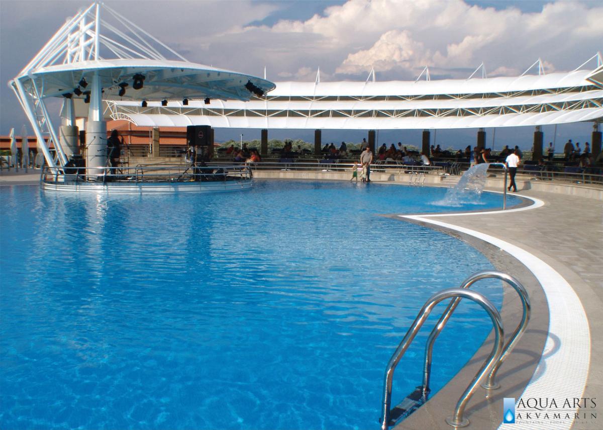 Aqua Arts – Akvamarin d.o.o. osnovan 1995. godine u Beogradu je privatno preduzeće za projektovanje i izvođenje arhitektonskih objekata i kompleksa – turističkih, sportskih i rekreativnih centara, fontana i bazena, opreme i instalacija, podvodne i dekorativne rasvete, a bavi se i projektovanjem enterijera i eksterijera, kao i privatnih objekata sa bazenima, sa wellness i SPA sadržajima.