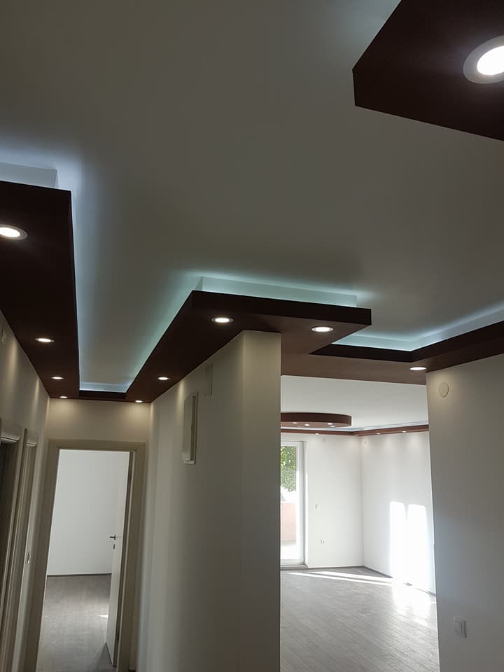 Po vašoj želji izrađujemo spuštene ravne plafone sa dve ili više kaskada, zakrivljene plafone oblika kruga elipse ili bilo kog drugog oblika, talasaste spuštene plafone, lukove, kupole i svodov