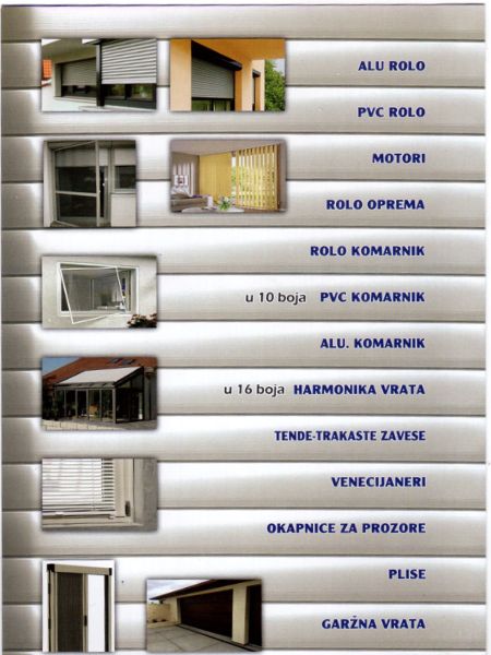 Vam nudi veliki izbor komarnika i roletni. Naš prodajni asortiman čine Alu i Pvc delovi, komarnici, okapnici, rolo zastori i delovi, harmonika i vrata i komarnici izrađeni po meri. Svi naši proizvodi su visokog kvaliteta, te garantujemo zadovoljstvo naših kupaca.